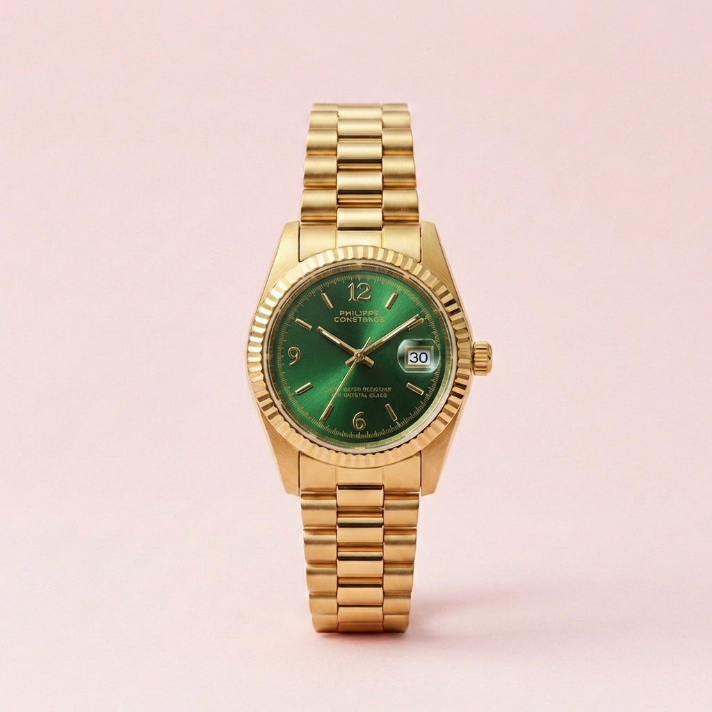 PHILIPPE CONSTANCE "SERRATED GOLD" PLAIN SMARAGD